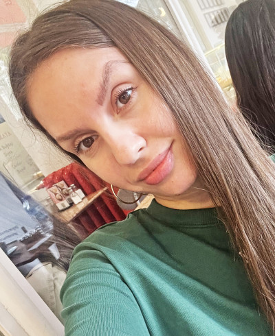 - Hair: Dark blonde, Long length