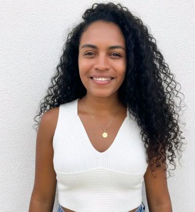 - Hair: Dark brown, Long length
