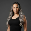 - Hair: Black, Medium length