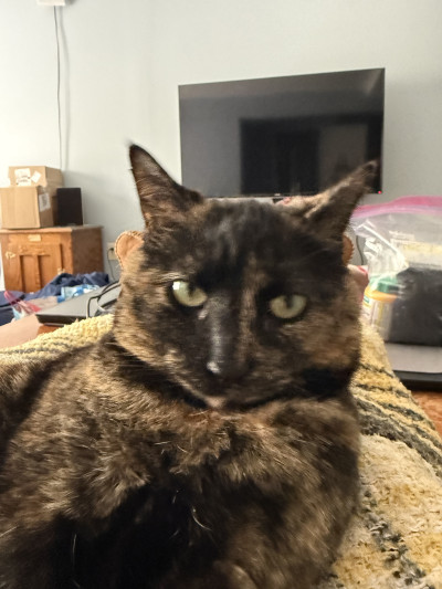 • Hair: Dark brown, Short length
