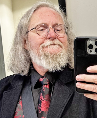 • Hair: Grey, Medium length