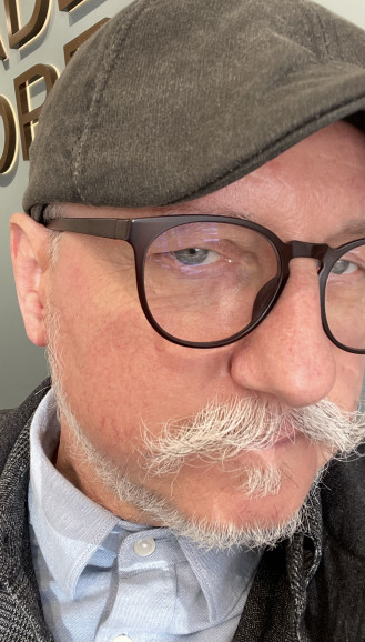 - Hair: Grey, Short length