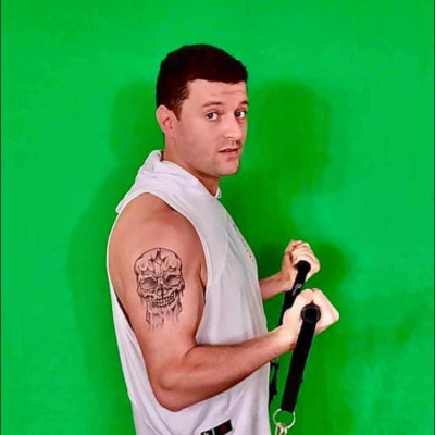 - Hair: Dark brown, Short length
